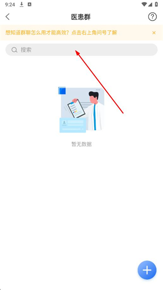 3、在醫(yī)患群頁面,點(diǎn)擊右上角的搜索框,輸入要加入的醫(yī)患群相關(guān)信息進(jìn)行搜索,加入對(duì)應(yīng)的醫(yī)患群。
