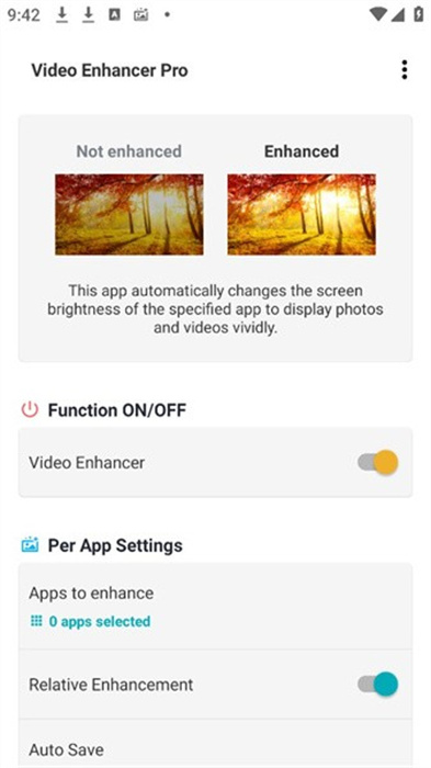 Video Enhancer Pro軟件是能夠隨時(shí)調(diào)整設(shè)備亮度的平臺(tái),并且支持多種設(shè)備可以使用,有興趣的用戶(hù)可以在線(xiàn)幫助自己感受更多關(guān)于亮度調(diào)整重要的部分,同時(shí)用戶(hù)還可以根據(jù)自己設(shè)備的情況自定義參數(shù),這些數(shù)據(jù)都會(huì)保存下來(lái),即使更換設(shè)備只要登錄賬號(hào)就能快速了解到信心,同時(shí)還能試用在各種場(chǎng)合下,如讀書(shū)、游戲、燈光等等,讓整個(gè)用眼過(guò)程更加健康有效,輕松減少視覺(jué)方面的疲勞程度。
