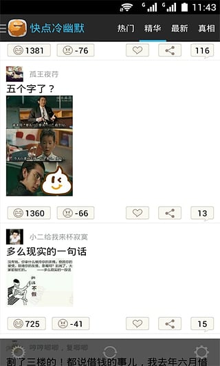 快點冷幽默是一款娛樂閱讀應用,快點冷幽默以圖文為主,通過搞笑的內(nèi)涵段子,夸張的動作表情來表達某些觀點,讓人不禁莞爾一笑,同時也讓人有一定的思考空間,這就是冷幽默的趣味。在線電影沒有了怎么辦,看幽默搞笑段子,輕松詼諧有內(nèi)涵,滾滾笑聲停不下來,熱點改變經(jīng)典段子,萌寵搞笑笑視頻,開懷一笑放松生活壓力,工作壓力,感情困擾。