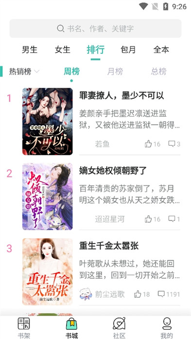 b、排行榜更新,將熱門小說按照不同類別進(jìn)行排序,用戶可以及時(shí)了解和追蹤熱門作品;