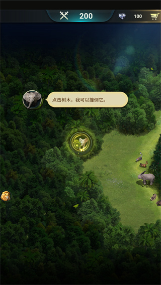 5、點(diǎn)擊旁邊的樹木,小象可以將這些樹木撞到,從而獲得更大的家園建造空間;