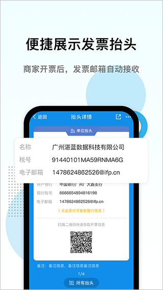 6、智能搜索功能,通過關鍵詞快速查找所需的電子發(fā)票信息,提高了信息檢索的效率和準確性。