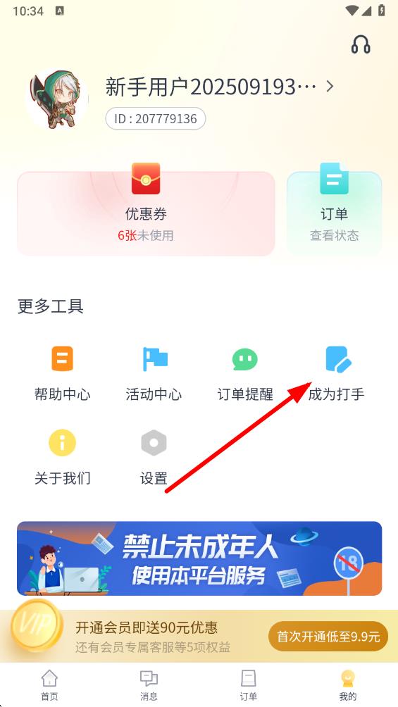 2、在個人界面的更多工具板塊中,點擊成為打手選項,進入成為打手的申請流程頁面。