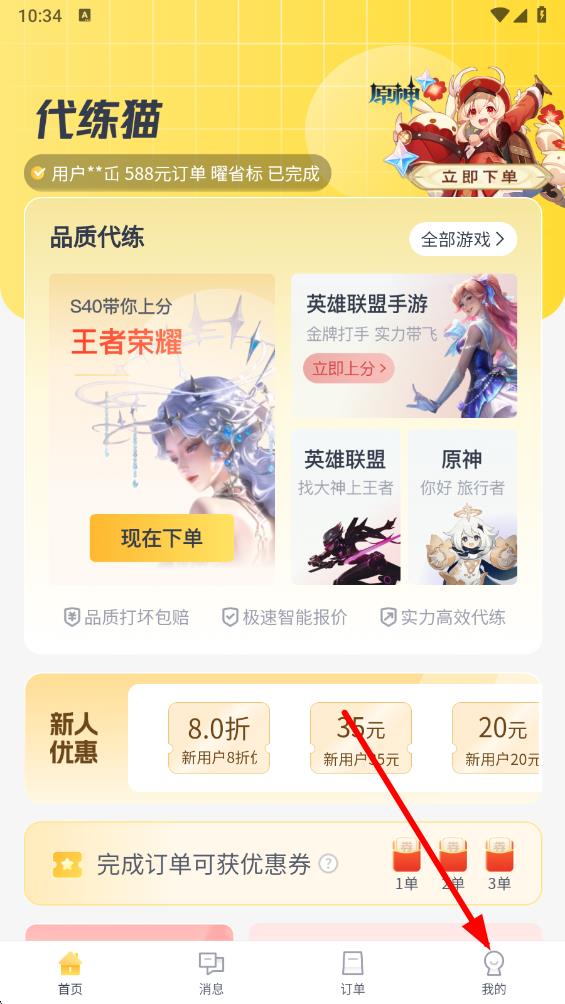 1、打開代練貓app,點擊底部導航欄最右側(cè)的我的選項,進入個人界面。