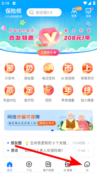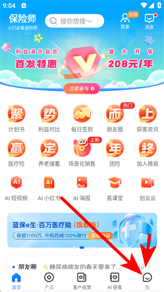 1、打開保險師APP,我們需要點擊右下角我,進(jìn)入個人的頁面。