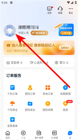 1、打開保險師app,點擊右下角我,進(jìn)入個人的頁面。