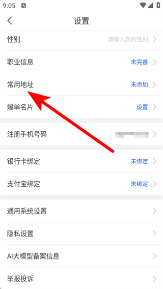 3、在設(shè)置的界面,點擊常用地址,進(jìn)入常用地址的頁面。