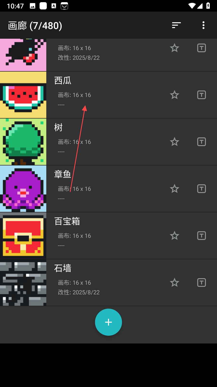 1、打開八位元畫家軟件進(jìn)入畫廊界面,在眾多已創(chuàng)作的像素畫列表中,找到想要分享的作品,點(diǎn)擊該作品進(jìn)入到繪畫編輯界面。