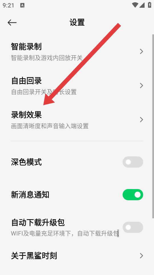 2、在設(shè)置界面中,點(diǎn)擊錄制效果選項(xiàng),進(jìn)入錄制效果設(shè)置頁(yè)面。