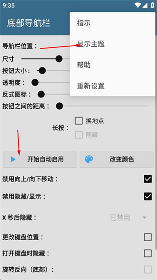4、點擊右上角三點,選擇“顯示主題”,再點擊“開始自動啟用”完成設(shè)置。