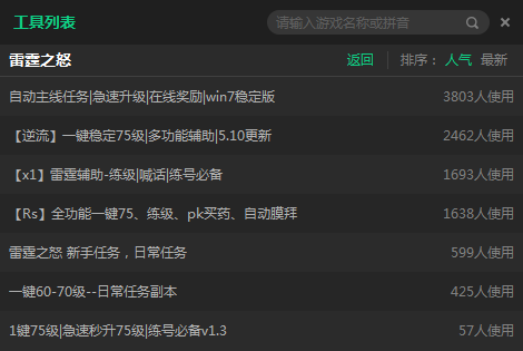 新浪雷霆之怒輔助官方助手是由新浪專為網(wǎng)頁游戲《雷霆之怒》打造的輔助工具,刷級(jí)必備神器!軟件可以一鍵讓你升到75級(jí),夠快嗎?還提供自動(dòng)膜拜、PK買藥、自動(dòng)任務(wù)、自動(dòng)喊話等功能。趕快下載體驗(yàn)吧!