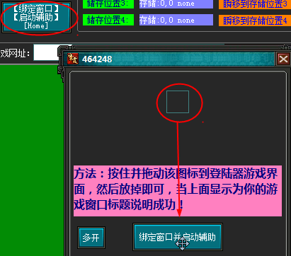 3.拖動掃描句柄插件掃描鎖定登陸器綁定窗口后再啟動輔助。