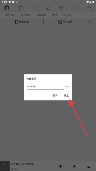 4、輸入新建歌單的名稱,輸入后點(diǎn)擊確定即可完成創(chuàng)建。