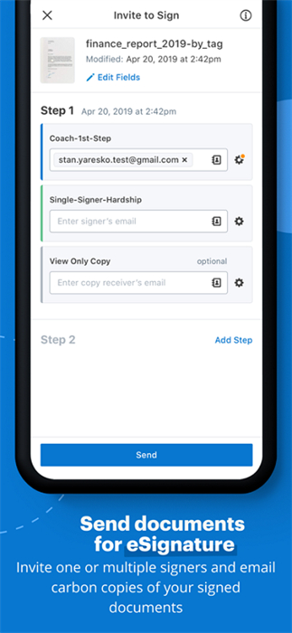 4、批量簽署:可以同時發(fā)送多個文件并邀請多個人進行簽署,提高辦事效率。