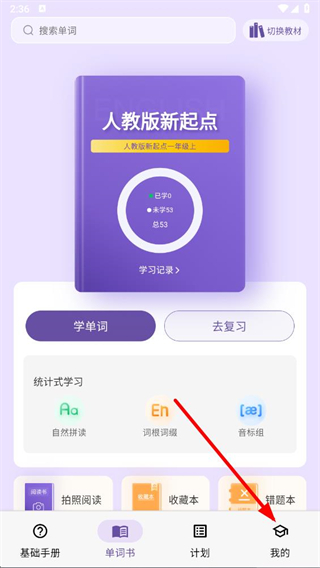 1、打開(kāi)超級(jí)單詞表app,點(diǎn)擊底部導(dǎo)航欄中的我的選項(xiàng),進(jìn)入個(gè)人相關(guān)頁(yè)面。