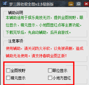 夢三國老梁全圖是專為熱門游戲《夢三國》打造的免費全圖輔助工具。軟件主要提供全圖功能,可以顯示全地圖視野,以及眼位,對手動向一目了然,打敗對手更容易。趕快下載體驗吧!