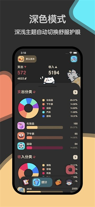 1、圖表統(tǒng)計:能生成清晰的圖表統(tǒng)計,方便直觀了解收入和支出情況;
