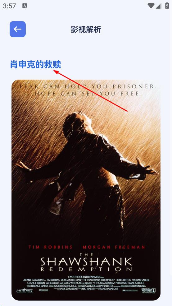 3、在影視頁面,瀏覽各類影視推薦內(nèi)容,包括不同評分的電影等,選擇感興趣的影視,比如肖申克的救贖,點擊進(jìn)入影視解析頁面。