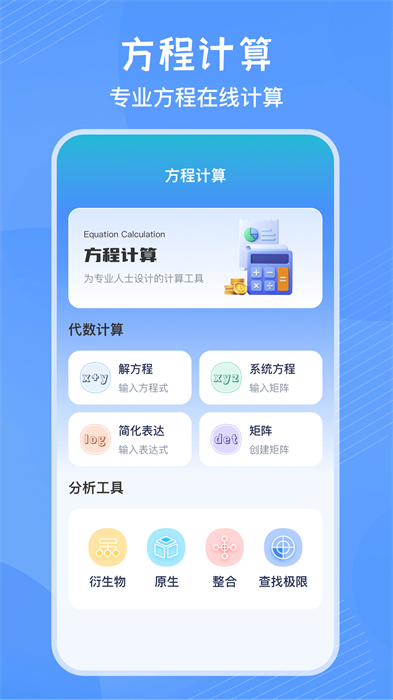 豎式計算器憑借其直觀的界面和全面的功能,成為許多用戶學習和工作中的得力助手。特別是在處理高等數(shù)學問題時,其高效的計算能力和清晰的演算過程展示幫助用戶快速理解并掌握數(shù)學知識。如果你是一名在學習或工作上會用到數(shù)學的人士,這款應(yīng)用絕對值得一試。無論是應(yīng)付考試還是解決工作問題,豎式計算器都可以減少你的負擔,讓計算變得更加輕松。