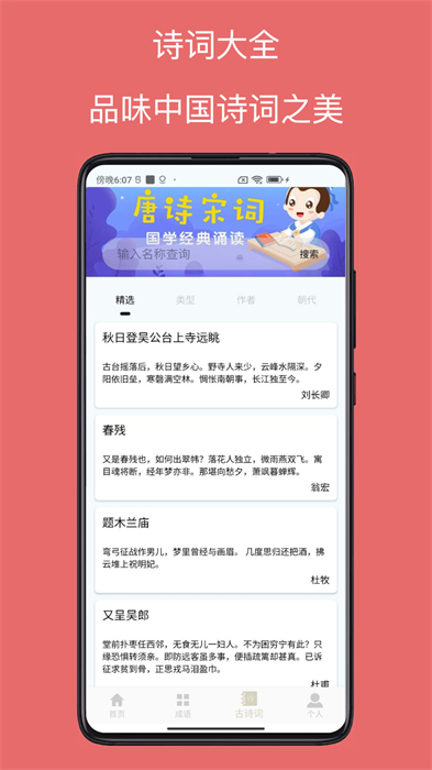 字典通app是一款非常好的漢語字典在線查詢工具,有了它我們就能輕松查看相關(guān)的漢字,它區(qū)別與書面字典的是可以通過搜索引擎來進(jìn)行漢字搜索,節(jié)省了漢字查詢的時(shí)間,同時(shí)它收錄了超過上千的詩詞和成語釋義,使得你在漢字查找的情況下還能輕松學(xué)習(xí)更多的傳統(tǒng)文化知識(shí)。