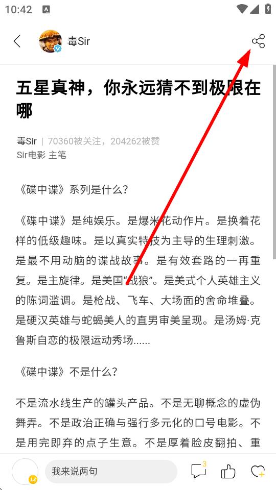 3、在文章詳情頁(yè),點(diǎn)擊右上角的分享圖標(biāo),彈出分享選項(xiàng)。