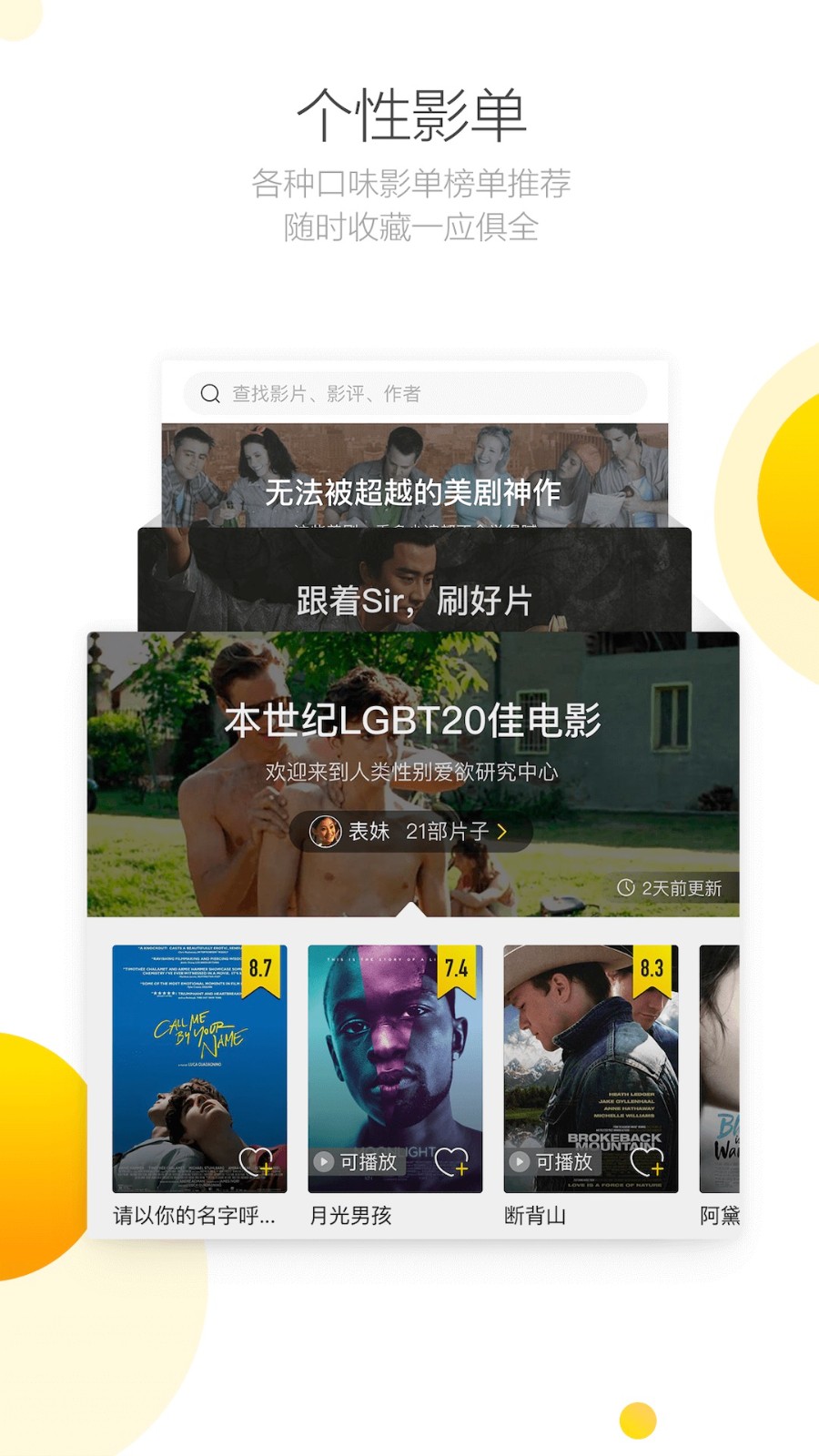 4、個(gè)性影單:提供各種不同口味的影單榜單推薦,隨時(shí)收藏一應(yīng)俱全;