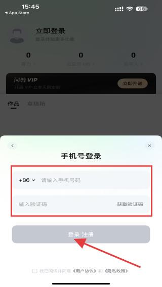 3、在手機登錄的頁面中,輸入手機號并獲取驗證碼,再點擊登錄。