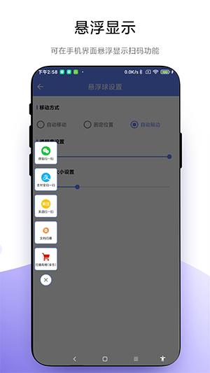 懸浮掃一掃app是一款功能實用的線上工具,只需要在這里添加上相應的功能就可以創(chuàng)建快捷方式,自動跳轉(zhuǎn)到相關(guān)的軟件當中,無需再次進行等待,輕松掌握整個掃描結(jié)果,不僅如此,這樣還能提高付款的效率以及掃描的時間,是個日常都不能缺少的軟件,有興趣的用戶快來下載吧!