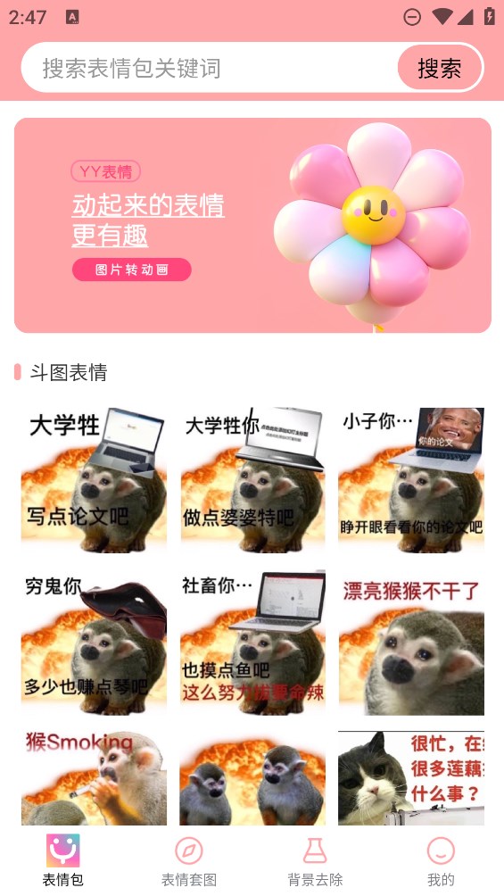 4、支持根據(jù)關(guān)鍵詞進行表情包搜索,能快速的找尋到所需要的圖片內(nèi)容;