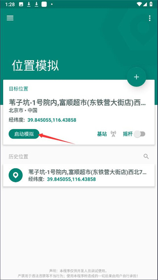 2、支持單點(diǎn)模擬位置功能,能在當(dāng)前實(shí)現(xiàn)單獨(dú)一個(gè)位置地點(diǎn)的模擬操作定位支持;