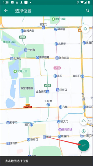 2、在地圖上選擇自己要模擬的位置,然后勾選對(duì)號(hào);