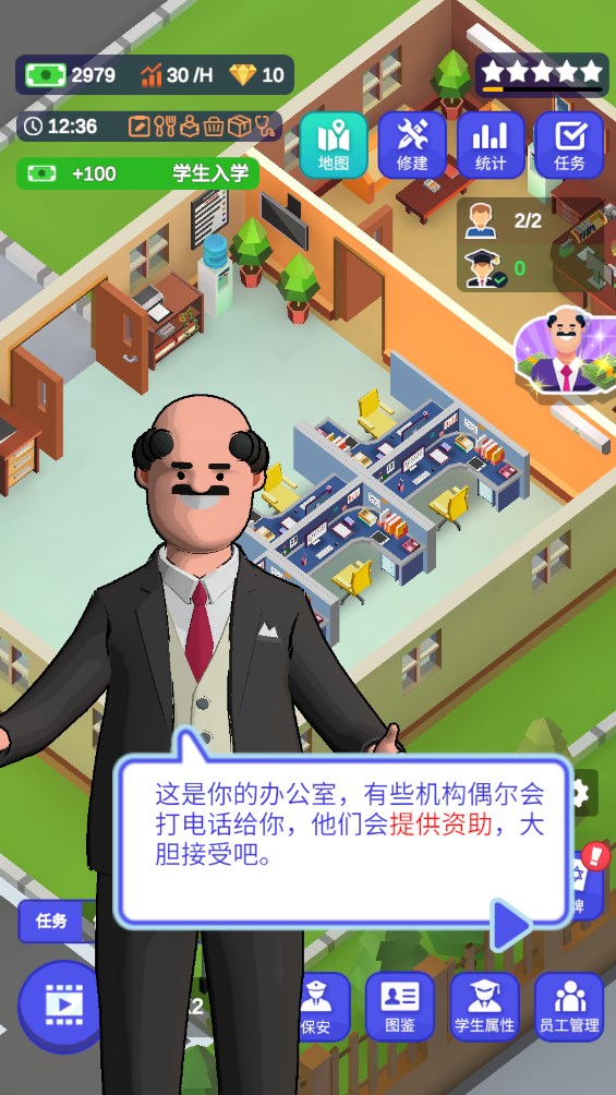 1、主角是一名管理這所校園的校長(zhǎng),為了發(fā)展學(xué)校需要合理的安排所有人;