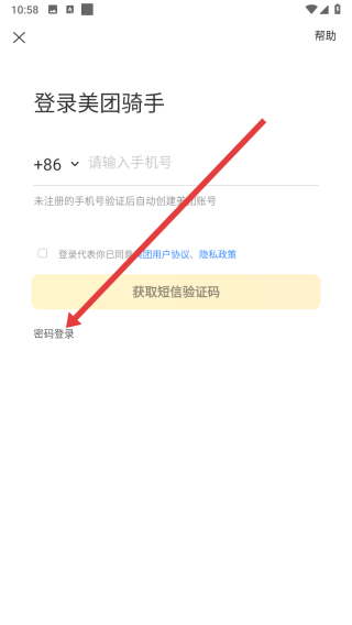 2、在進(jìn)入到登錄頁面中時,可以點擊下方密碼登錄按鈕,切換登錄方式。