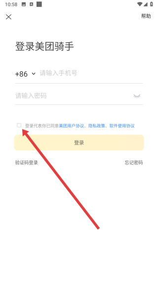 4、在勾選好同意按鈕后,點擊輸入框依次輸入手機(jī)號和密碼,即可完成登錄操作。