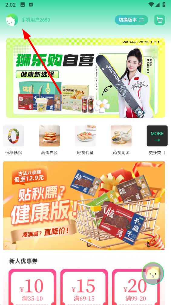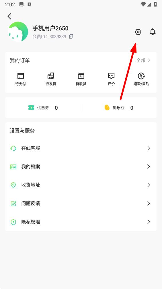 1、打開獅樂購app,點擊左上角頭像區(qū)域,進入個人相關(guān)信息管理界面。