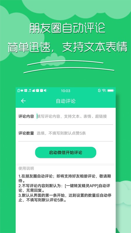 4、支持設置自動評論功能,在朋友圈中一旦有新的動態(tài)會及時的發(fā)送評論并互動;