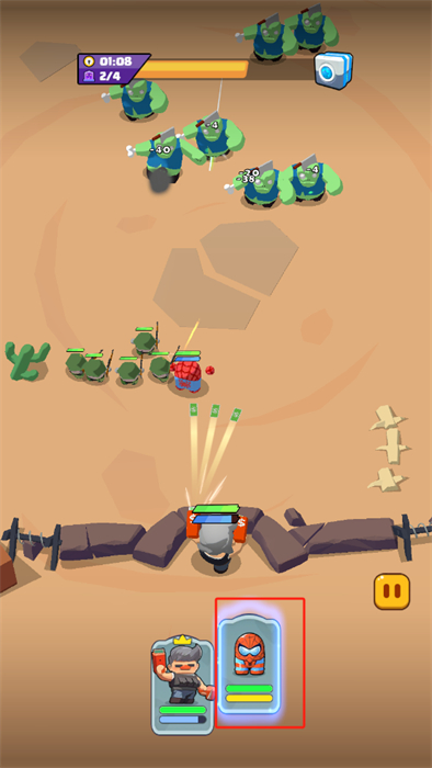 4、戰(zhàn)斗過程中玩家還將可以不斷的進行戰(zhàn)斗小兵的添加,但只有下方的卡牌變亮后才可以進行添加。