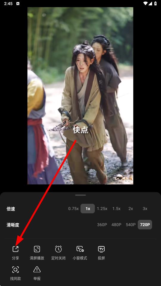 3、在功能欄中,點(diǎn)擊分享按鈕,選擇分享渠道,即可將視頻分享給好友。