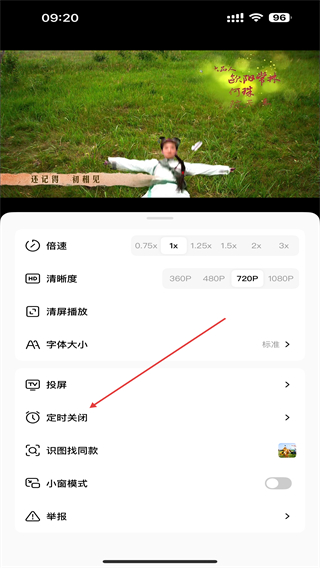 3、在下方彈出的菜單欄中,找到并點(diǎn)擊定時(shí)關(guān)閉的功能按鈕。