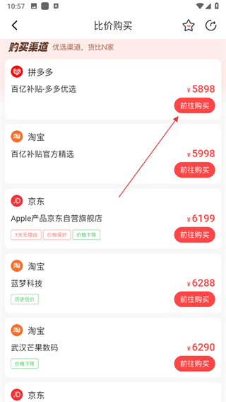 3、選擇心儀的購(gòu)買平臺(tái),點(diǎn)擊該平臺(tái)對(duì)應(yīng)的前往購(gòu)買按鈕,進(jìn)入該平臺(tái)的商品詳情頁(yè)面。