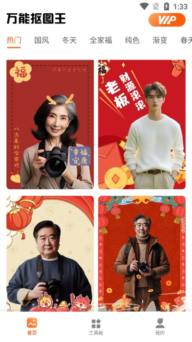 萬能摳圖王軟件是一款非常實(shí)用的線上摳圖工具,其中包含了超多優(yōu)質(zhì)的照片模版,直接導(dǎo)入素材即可進(jìn)行創(chuàng)作,直接通過模版的搜索可以讓整體變得創(chuàng)作變得更高效,并且還會根據(jù)當(dāng)前的節(jié)日進(jìn)行更新,如春節(jié)、元宵節(jié)、情人節(jié)等等,推送最時(shí)尚的貼紙和模版效果,十分有趣。