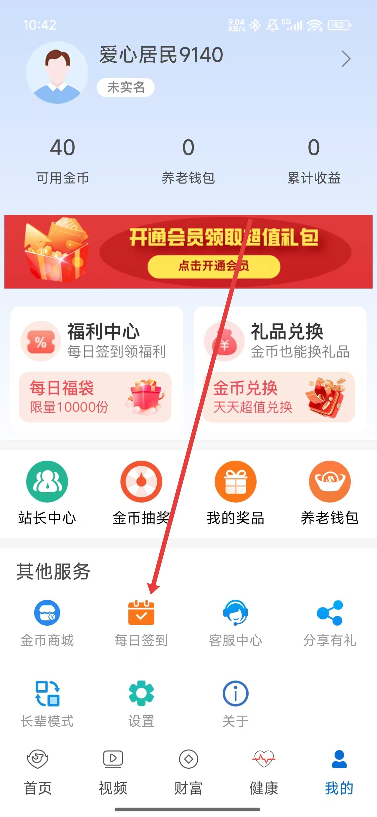 2、在進入到我的主頁中,可以點擊下方每日簽到,進入簽到頁面。