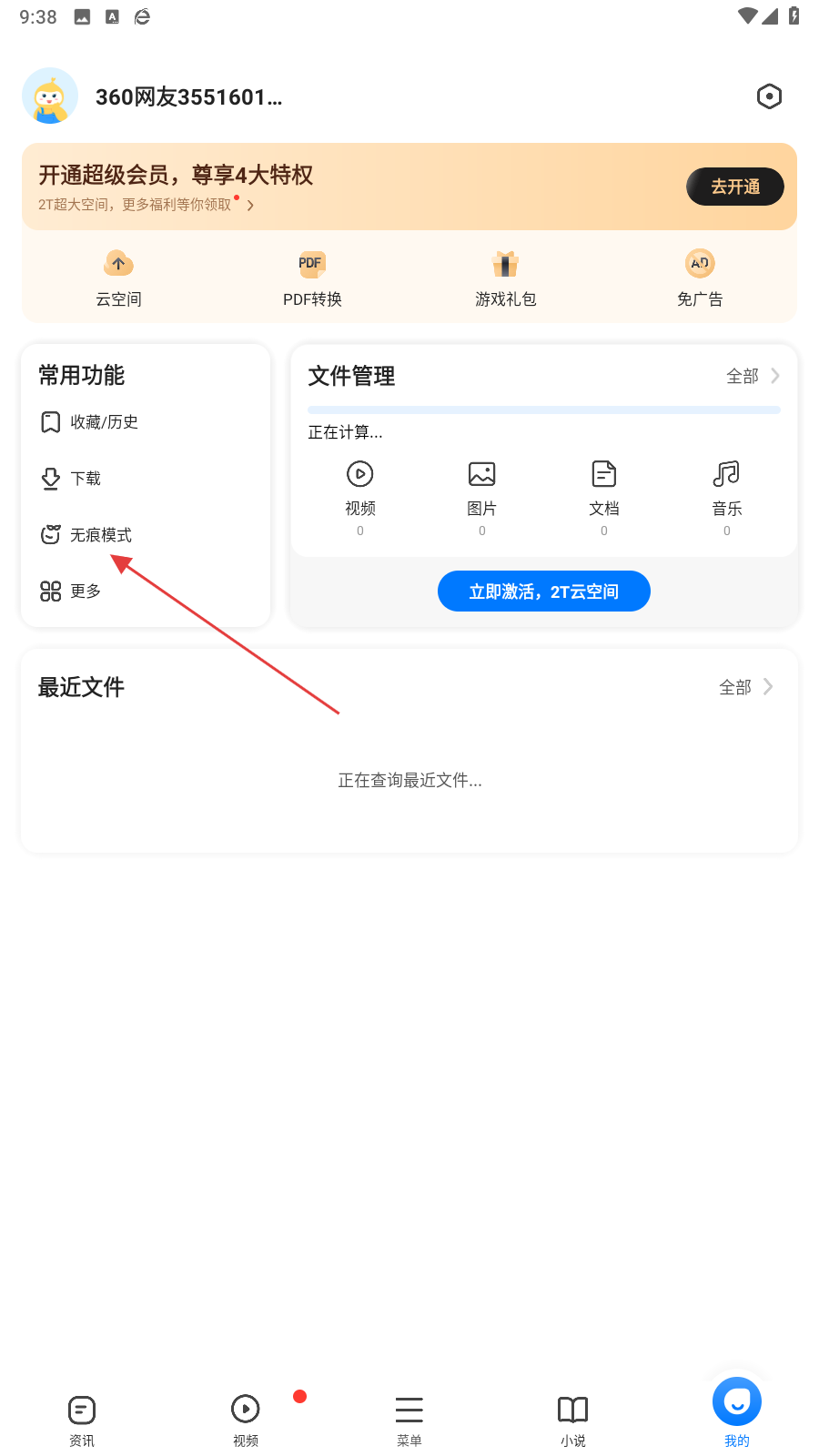 3、在我的頁(yè)面內(nèi)內(nèi),找到并點(diǎn)擊無(wú)痕模式的功能按鈕。