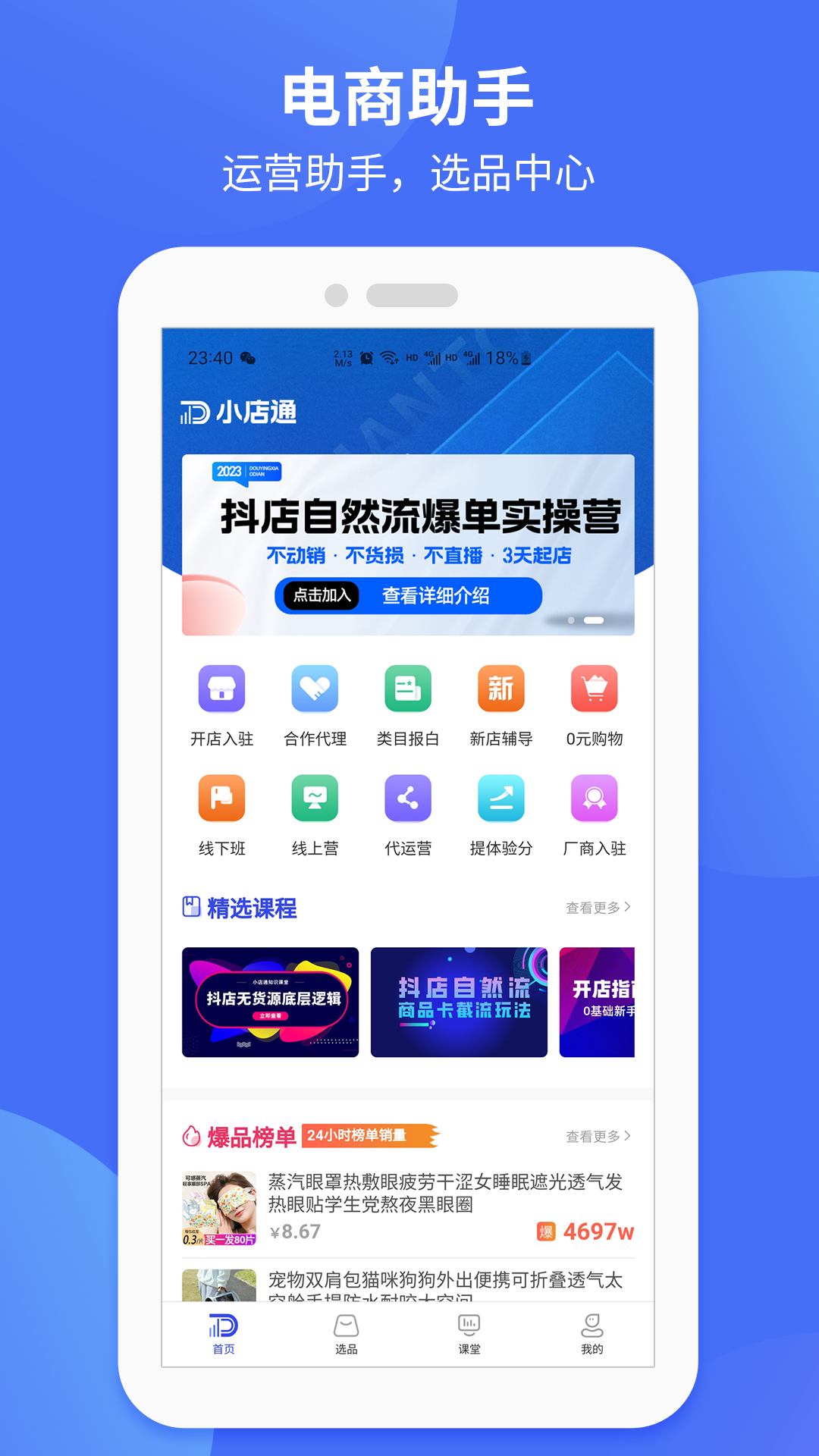 小店通app是一款抖店商家選品運(yùn)營(yíng)助手,主要提供一站式電商解決方案,非常適合做電商的用戶使用,絕對(duì)是大家工作的好助手,幫助用戶提高電商運(yùn)營(yíng)效率,并且軟件有提供超多豐富的電商運(yùn)用課程,用戶可以在線選擇適合自己的開(kāi)始學(xué)習(xí),掌握更多的專業(yè)知識(shí)。