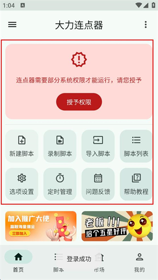 大力連點器app是一款能夠幫助我們輕松解放自己的雙手的手機工具,有了它,我們只需要簡單的進行設置腳本就能自動進行點擊,同時為了使用戶更容易上手它還準備了海量的腳本模板可供你去選擇,快來下載試試看吧。