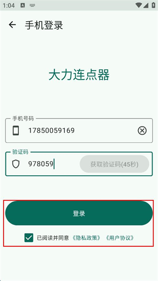 3、勾選已閱讀并同意隱私政策,用戶協(xié)議,點擊“登錄”按鈕完成登錄。