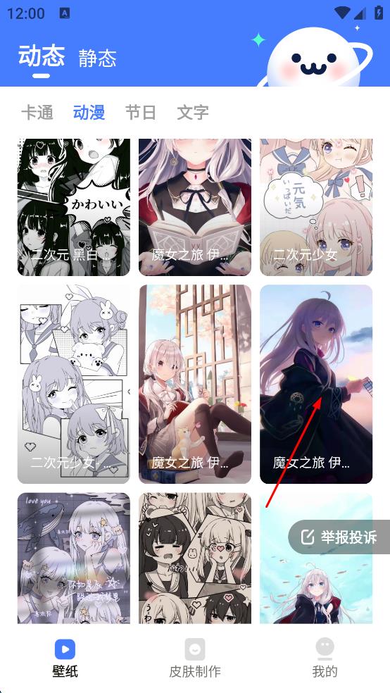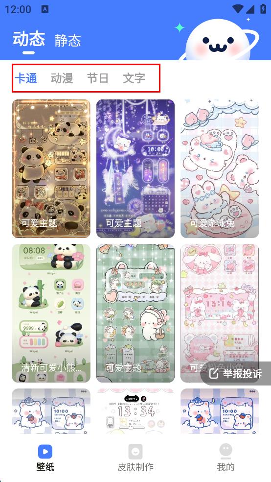 1、打開壁紙軟件,在頂部分類欄中找到自己喜歡的分類,點擊該分類,進入該類別的壁紙展示頁面。