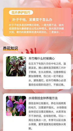 d、不斷更新,每天都能看到新的花草知識(shí),在養(yǎng)殖的過程中也能更輕松。