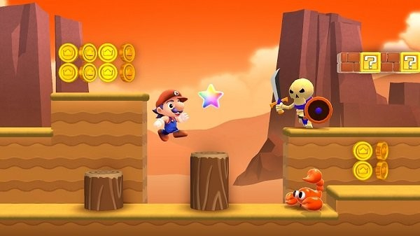 4、冒險的形式是非常經(jīng)典且有趣的,主要通過馬里奧的跳躍來實現(xiàn)目的;