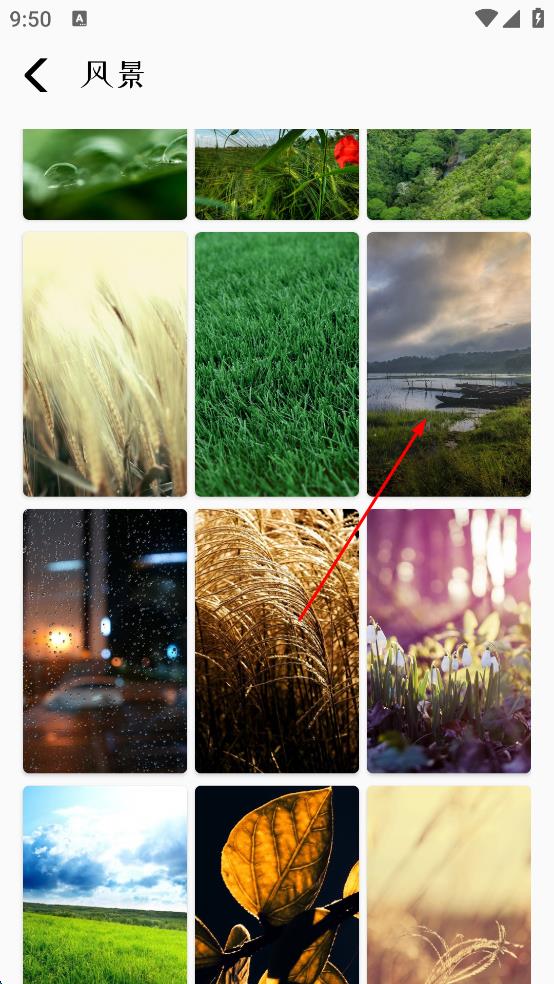 2、在風(fēng)景類壁紙展示頁(yè)面,瀏覽眾多風(fēng)景壁紙,找到自己心儀的那張壁紙,點(diǎn)擊這張壁紙,進(jìn)入壁紙的詳情頁(yè)面。